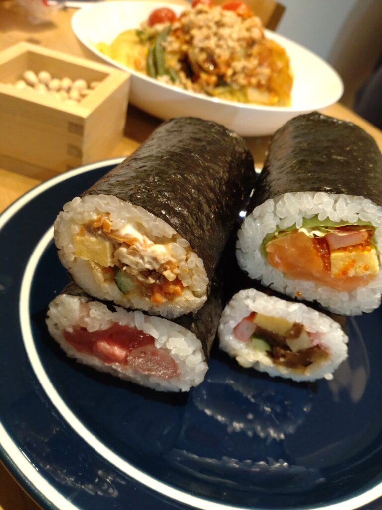 とか、考えながら晩ごはんに恵方巻を準備していただきました。もちろん!ちゃんと東北東向いて。